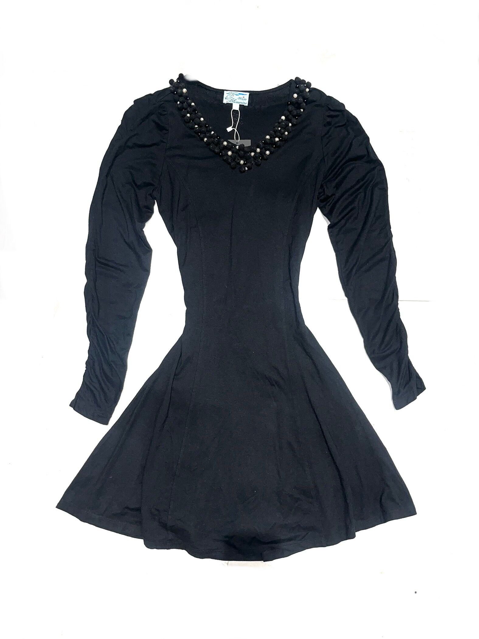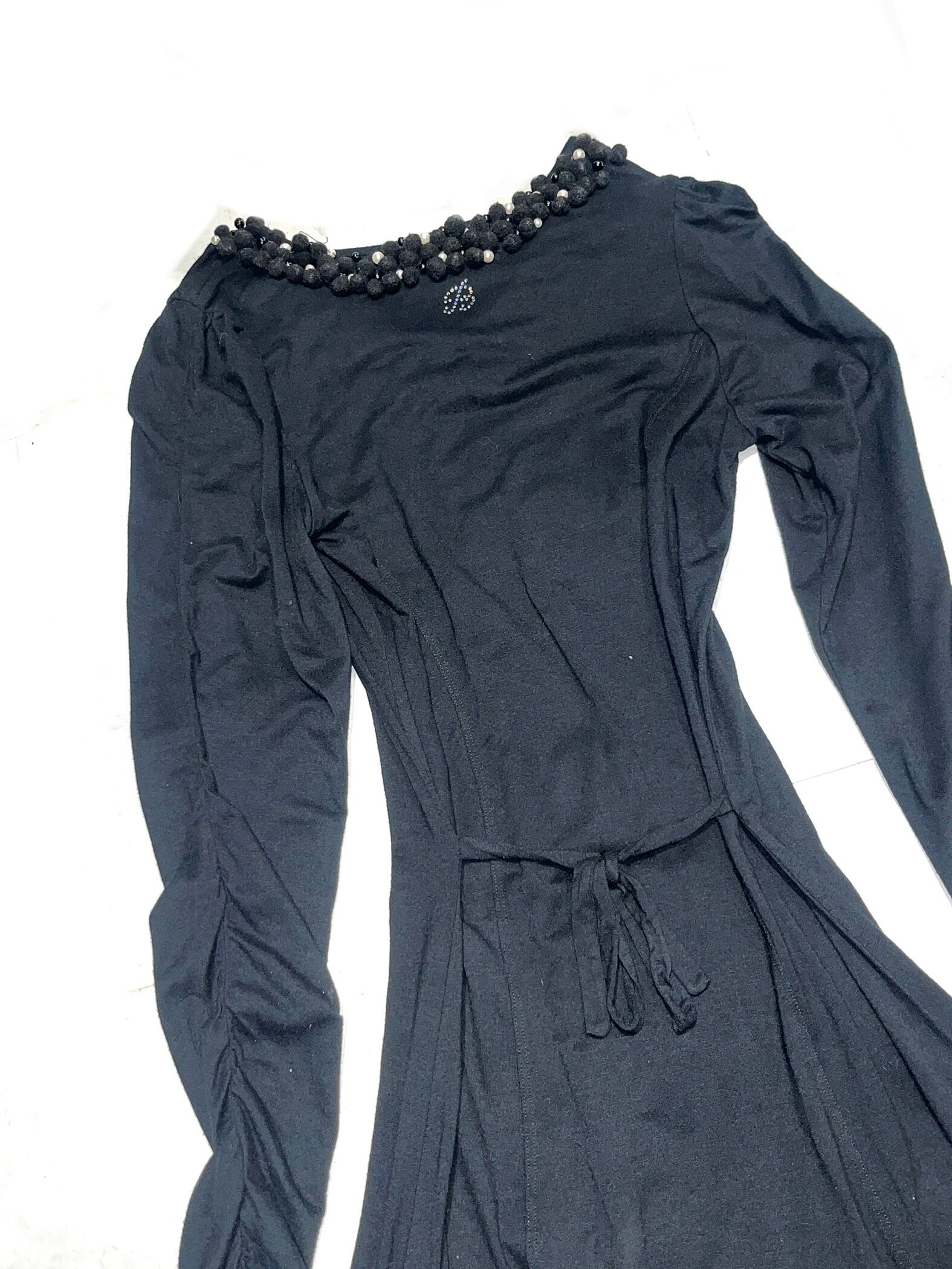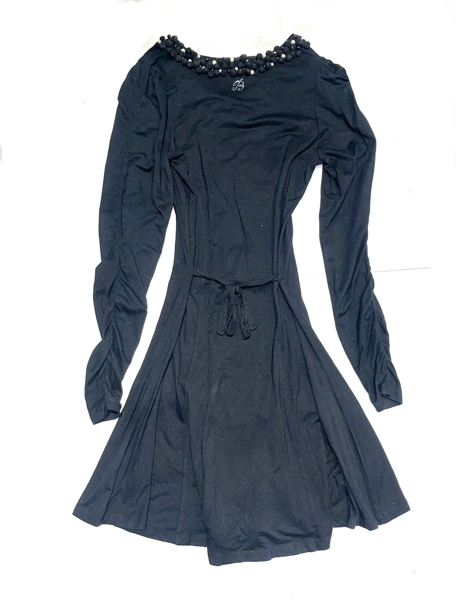 y2k Miss Blumarine long sleeve mini dress featuring a fitted silhouette and flared skirt.