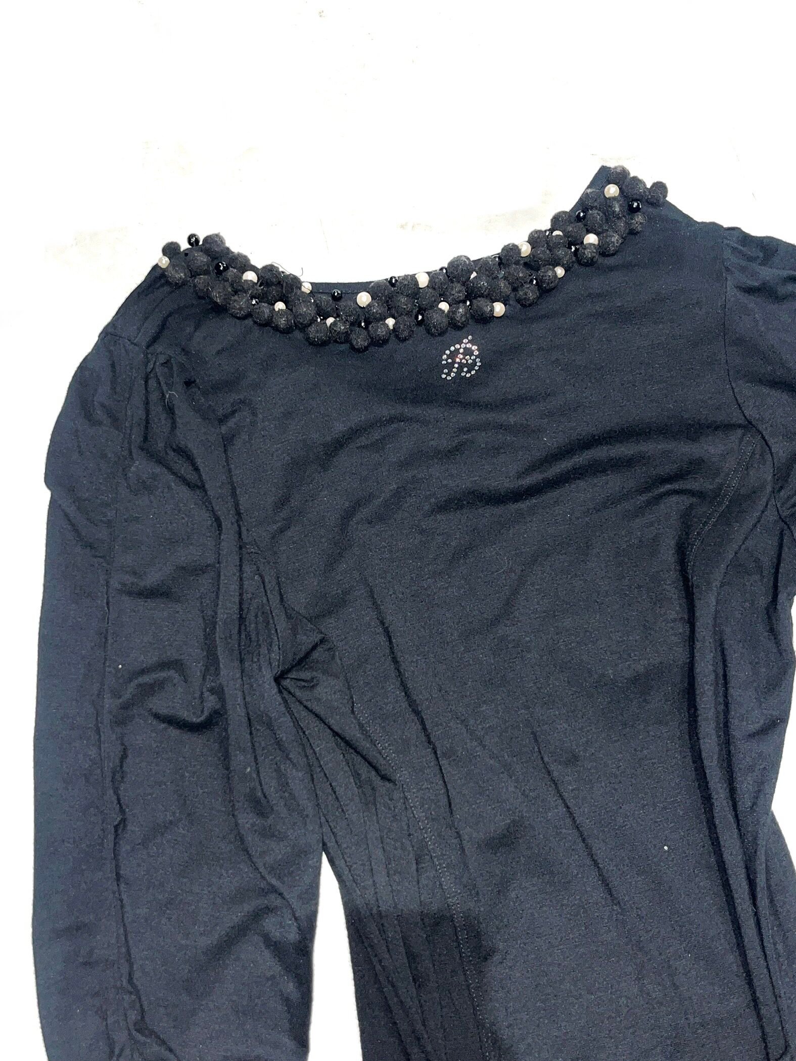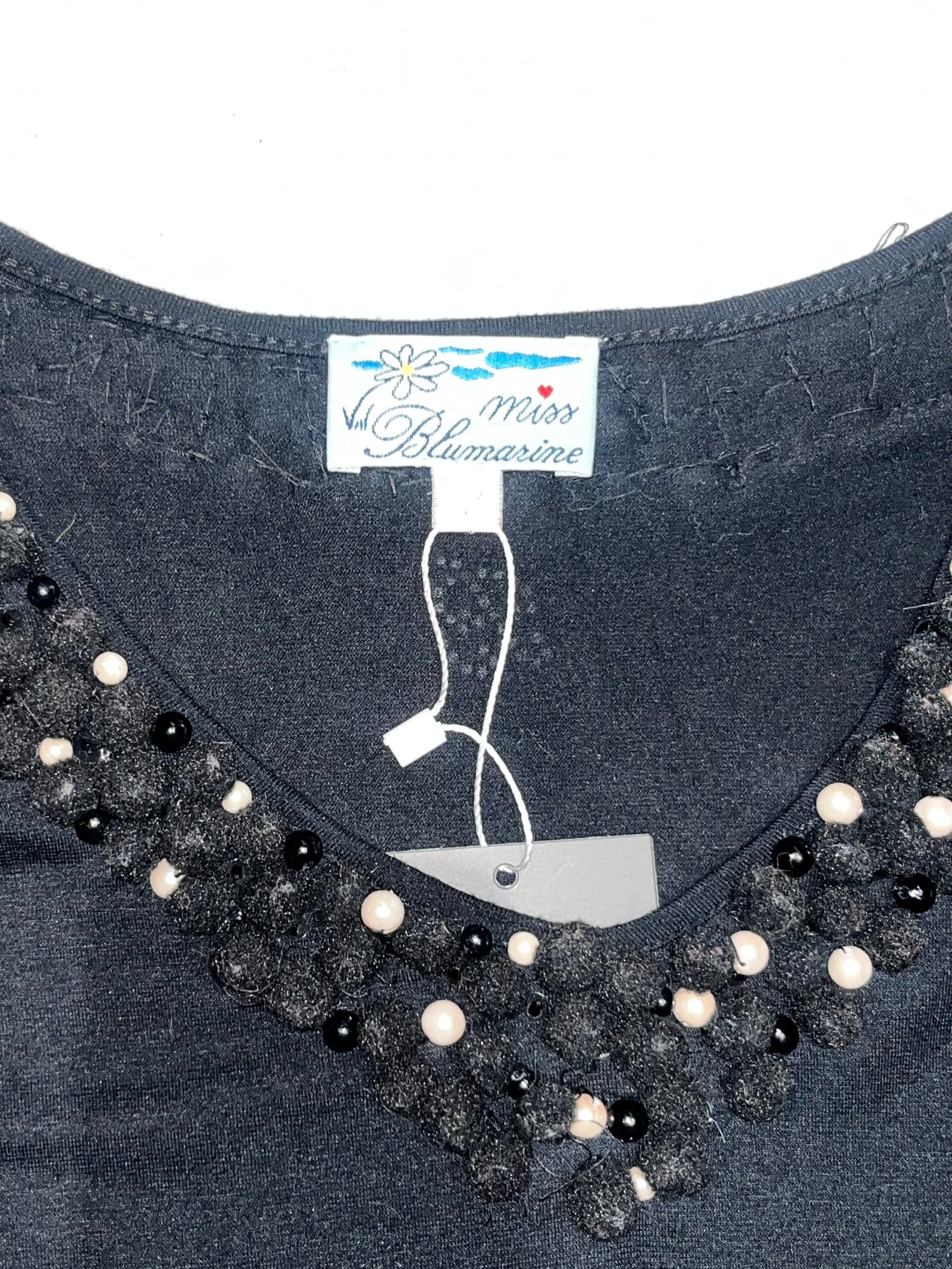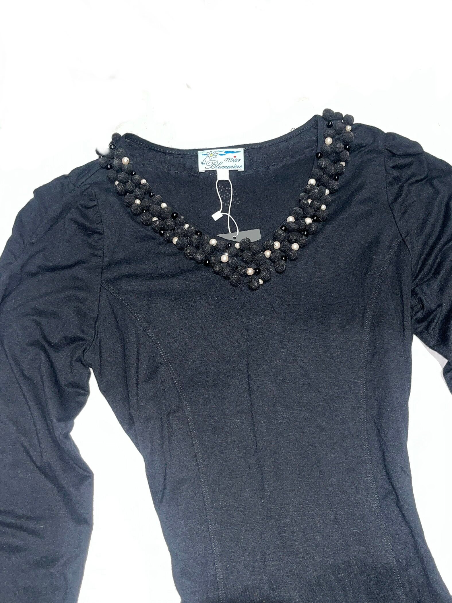 Decorated with felt appliqué detailing along the neckline, scrunched design on sleeves.
