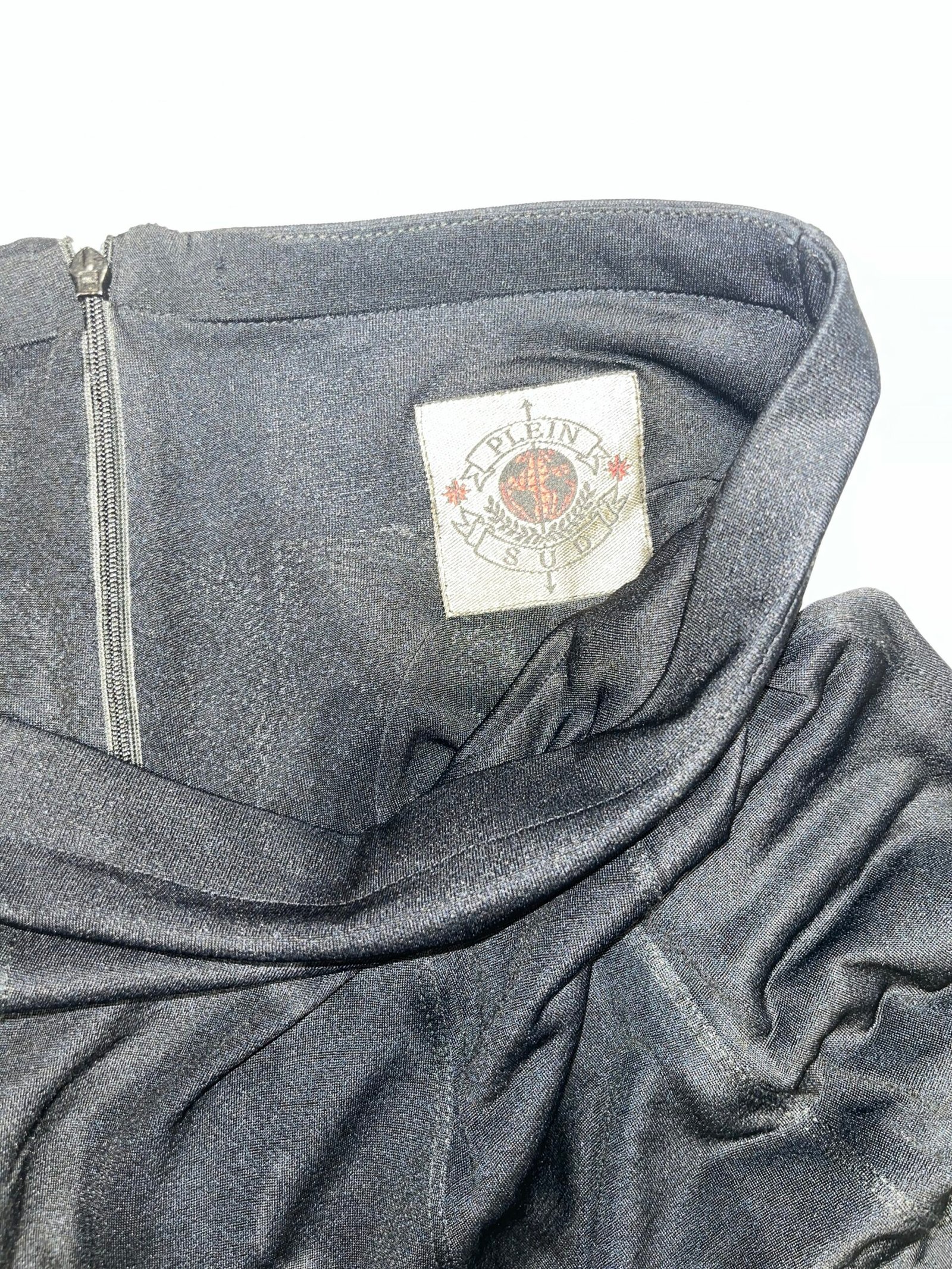 Plein Sud black mini skirt from the early 2000s, made in France.